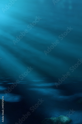 Fototapeta premium Underwater background environment illuminated by rays of light filtering from the surface. 3D Rendering