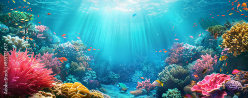 Naklejka premium Underwater background with a colorful coral garden and vibrant reef fish.