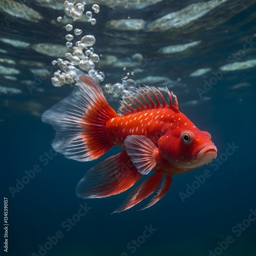 © Chamika, Fototapeta premium Underwater Ballet: A Red Handfish Swimming Through Vibrant Waters