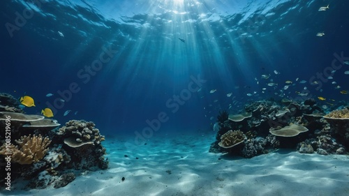 © BONDET LUCKY, Fototapeta premium underwater blue empty background in sea generate ai