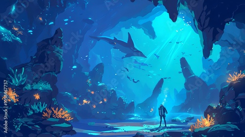 © Safaruly, Fototapeta premium Underwater Cave Exploration