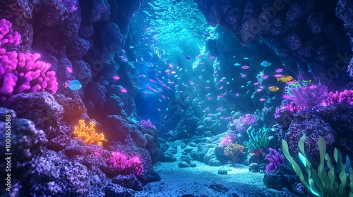 © Phichaphat, Naklejka premium Underwater Cave with Coral and Fish