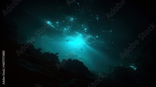 Fototapeta premium Underwater cavern, vibrant blue light