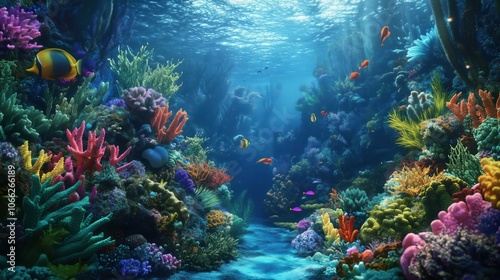 Fototapeta premium Underwater Coral Garden with Diverse Marine Life and Sun Rays - made with...