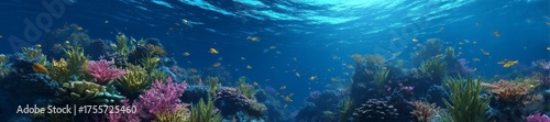 Fototapeta premium Underwater coral reef adventure ocean hdr panorama vibrant marine life