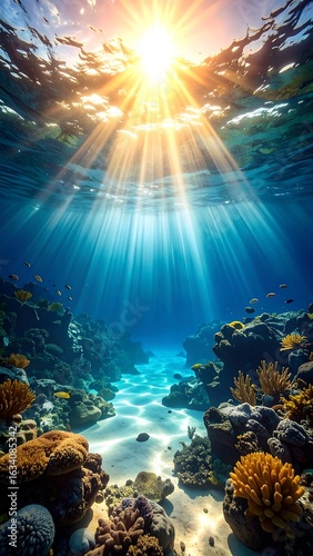 Fototapeta premium Underwater coral reef scene bathed in sunlight
