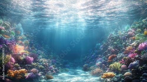 Fototapeta premium Underwater coral reef scene, sunlight, ocean