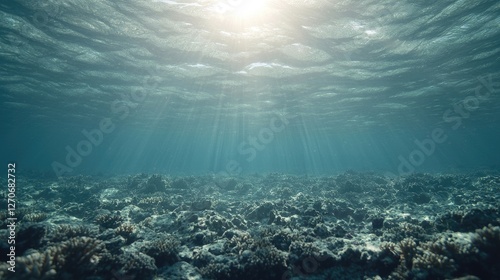 Fototapeta premium Underwater coral reef, sunlight beams through water, marine ecosystem,...