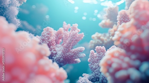 Fototapeta premium Underwater Coral Scene with Soft Pink Reef Background,Generative Ai