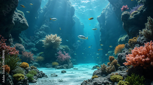 © Turgut, Naklejka premium Underwater corals and fish living in the sea.