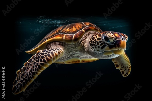 Fototapeta premium Underwater cute turtle. Generate Ai