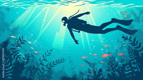 Fototapeta premium Underwater Diver Swimming Activity Vector Illustration