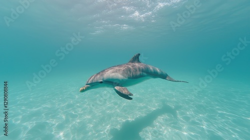Obraz premium Underwater dolphin swimming in clear turquoise water. Possible use Stock...