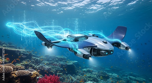 © Re, Fototapeta premium Underwater Drone Exploring Vibrant Coral Reef