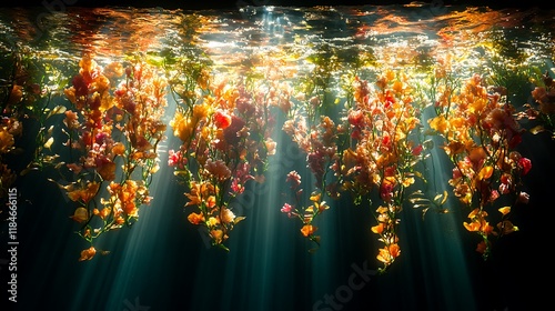 Naklejka premium Underwater floral arrangement illuminated by sunbeams