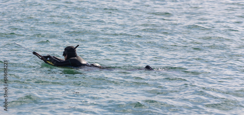 Fototapeta premium Underwater hunter preparing to dive. Fishing on sea