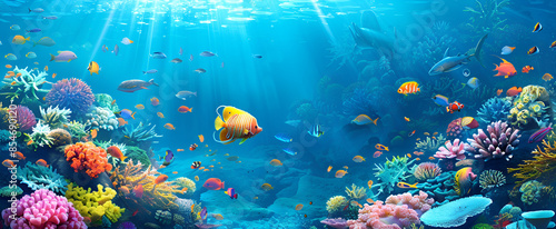 Naklejka premium underwater Immerse yourself in a breathtaking scene teeming with colorful...