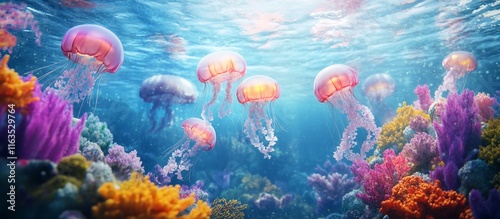 © achmad, Fototapeta premium Underwater Jellyfish and Coral Reef.