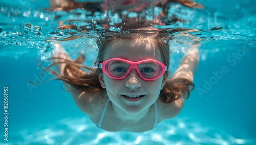 Naklejka premium Underwater Joy, Goggles, and Ripples. A Submerged Perspective in Turquoise...