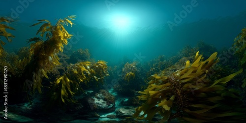 Fototapeta premium Underwater kelp forest exploration coastal waters hdr panoramic view