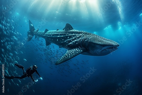 © Tanya, Fototapeta premium Underwater life, free diving, Generative AI