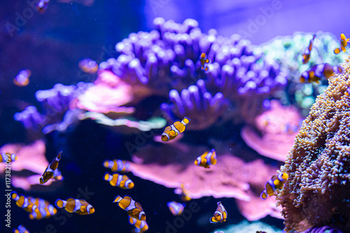 © Daria, Fototapeta premium underwater life in the aquarium. exhibition of fish and aquariums. coral reef and diving. rest and snorkeling. colorful corals and fish.