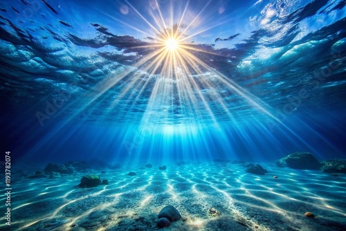 Fototapeta premium Underwater Light Beam, Sunbeam, Ocean, Deep Sea, Blue Water Stock Photo
