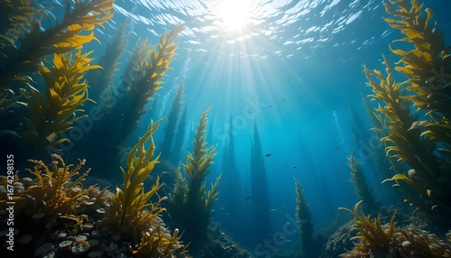 Fototapeta premium Underwater Limestone Crevice Illuminated by Submersible Lights – Sunlight...