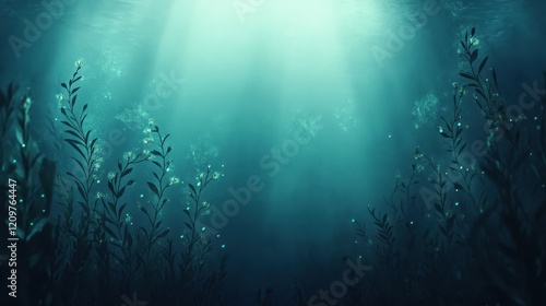 Fototapeta premium Underwater Luminescent Flora Illuminates Deep Ocean Depths