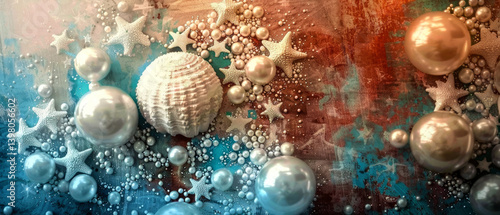 Fototapeta premium Underwater marine composition with seashells, starfish, and pearls on a...