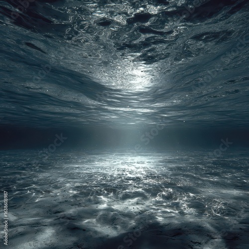 Fototapeta premium Underwater ocean floor scene, sunlit surface, seabed texture, for marine...