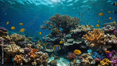 © demzp, Naklejka premium Underwater ocean world with fish and reefs