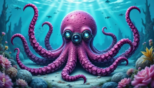 © TBC, Fototapeta premium Underwater octopus with glasses