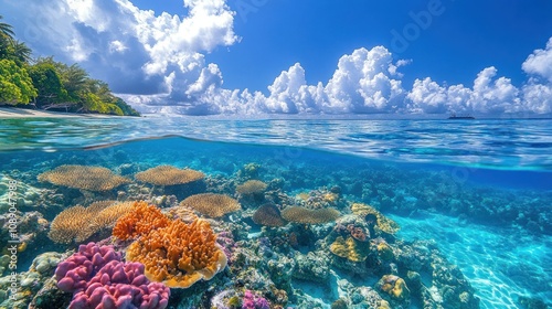 Naklejka premium Underwater Paradise: A Glimpse into the Vibrant Coral Reef