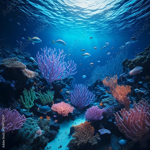Fototapeta premium underwater paradise, bioluminescent sea creatures