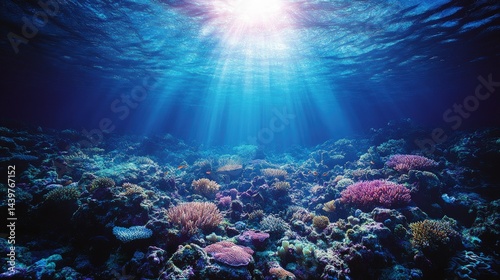 Fototapeta premium Underwater paradise Sunlit ocean illuminates vibrant coral reef