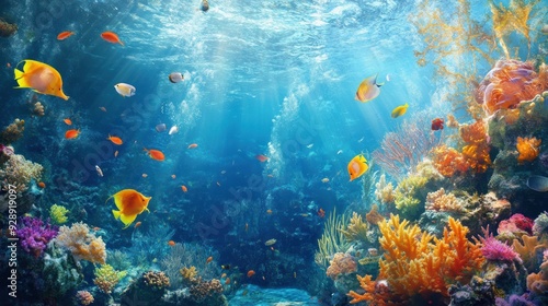 Fototapeta premium Underwater Paradise: Vibrant Coral Reef & Colorful Fish