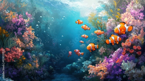 Naklejka premium Underwater Paradise with Clownfish