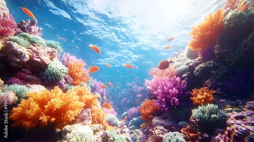 Naklejka premium Underwater pictures of coral reefs surrounded by shimmering schools of fish