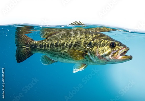 © okayon, Fototapeta premium Underwater Portrait of a Largemouth Bass Swimming in Clear Water