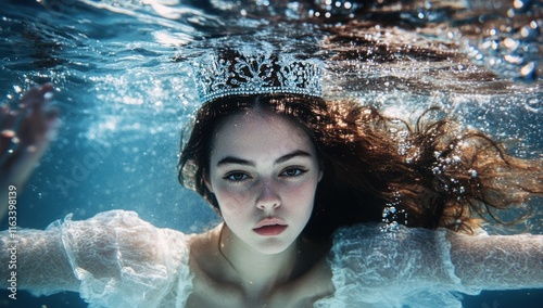 © rak, Fototapeta premium Underwater Portrait of a Woman Wearing a Crown