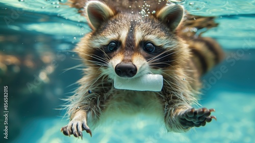 © K silver, Fototapeta premium Underwater Raccoon Adventure
