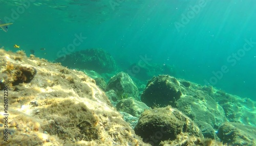 © Sumarticv, Obraz premium Underwater rocks and sunlight