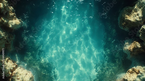 Naklejka premium Underwater rocks, sunlight, clear water, tranquil scene, nature background