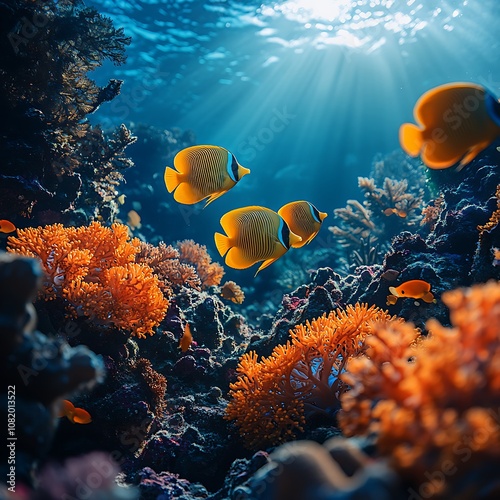 © Joy, Fototapeta premium Underwater scene alive with clownfish among a vibrant coral reef picture