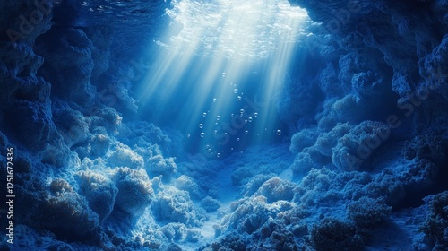 Obraz premium Underwater Scene Ethereal Bubbles Coral Deep Blue Surreal Ocean Abstract...
