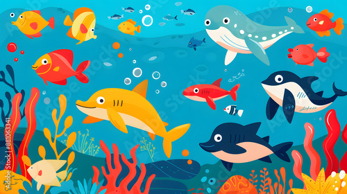 Naklejka premium Underwater scene in a flat design style cartoon children illustration