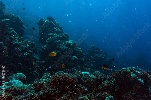 © likbatonboot, Fototapeta premium underwater scene of scuba diver and coral