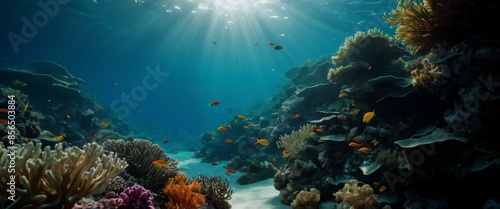 Fototapeta premium Underwater scene sunlight rays penetrating the surface illuminat