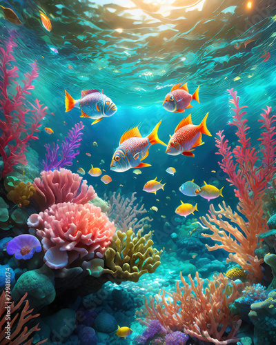 Naklejka premium underwater scene vibrant coral reef teeming with colorful fish